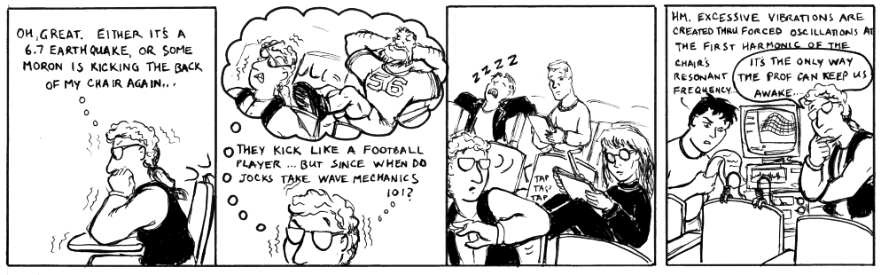 This year, about 30 of the most popular independent online comic strips switched comic strips on April Fool's Day (1999). Click on the banner above for more information on the full event. Nukees switched with Vince Suzukawa's The Class Menagerie, an excellent strip, I must say. That means Vince drew my strip for April Fool's and I drew his. I have to say, I had a blast drawing his characters (Lisa is very cute), and I think he did an excellent job showing me up with mine. Below are the two strips we drew: |