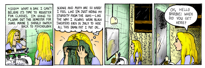 Announcing the FIRST RUNNER UP of the coloring contest! It's Aeire! She picked a very early strip and had virtually nothing to work with, but look what a beautiful job she did with so little. The graveyard grass blows me away. I'm convinced if she'd sent in the six other strips she requested, MaliciousFerret would've had a serious run for his money. As first runner up, Aerie wins a sketch of one Nukees character of her choice, contingent on her sending in her other entries. ;D Go see more of her incredible coloring work at Xenith. Here's her entry below: ![]() ![]() Today, we present the first of three HONORABLE MENTIONS! Sylvan Migdal did a very good job with one of the few entries that picked a more modern strip. (Seems most were obssessed with my older, more embarrassingly drawn strips). Great job with Teri and the clouds, methinks. Sylvan used to draw a strip called Spork (presumably not to be confused with Sporkman), but now seems to have switched to A God's Life. His entry: ![]() ![]() Today is the second coloring contest HONORABLE MENTION, this one expertly shaded by Jakeline, despite working with my screwed up sink perspective. I don't believe Jakeline has a webpage to plug, but I'm sure she'll correct me on that soon if I'm wrong. His entry: ![]() Copyright © 2001 Darren Bleuel Redistribution in whole or in part prohibited except by permission ***premium_off*** | |